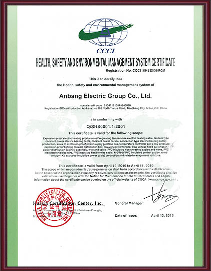 安邦電氣股份有限公司,總部位于北京市長安街,成立于2004年,注冊資金10088萬。安徽生產(chǎn)基地占地面積63000平方米,擁有66套各類生產(chǎn)線,其中進口生產(chǎn)線6套。國家高新技術型企業(yè),滁州市市長質量獎企業(yè),專精特新“小巨人”企業(yè),擁有國家知識產(chǎn)權局授權的45項專利,其中發(fā)明專利28項 , 主筆《太陽能熱利用自限溫電熱帶安裝規(guī)范》行業(yè)標準,參編《自限溫電伴熱帶》國家標準、《工業(yè)和商業(yè)用電阻式伴熱系統(tǒng)》國家標準、《太陽能熱利用自限溫電熱帶》行業(yè)標準、《爆炸性環(huán)境 電阻式伴熱器》國家標準等7項國家標準。企業(yè)通過UL認證,國家強制性 CCC產(chǎn)品認證,ISO9001質量管理體系認證,ISO14001環(huán)境管理體系認證,ISO45001職業(yè)健康安全管理體系認證,Q/SHS0001.1健康、安全與環(huán)境管理體系認證,歐盟防爆ATEX認證,歐盟CE認證,RoHS認證,俄羅斯海關聯(lián)盟認證,國家防爆電氣CCC證書。產(chǎn)品系列:集膚伴熱系統(tǒng)、電伴熱系統(tǒng)、電加熱器、電地暖系統(tǒng)、集儀器儀表、電線電纜、高低壓配電柜(箱)、電纜橋架、閥門管件等等設計、制造、銷售。產(chǎn)品應用于航天航空、軍工、石油、石化、天然氣、機場、化工、鋼鐵、隧道、消防、養(yǎng)殖、融雪化冰、室內(nèi)供暖、國家電網(wǎng)及眾多電廠等等國家重點工程。出口美國、英國、德國、俄羅斯、韓國、日本、哈薩克斯坦、烏克蘭、伊朗等眾多國家。
